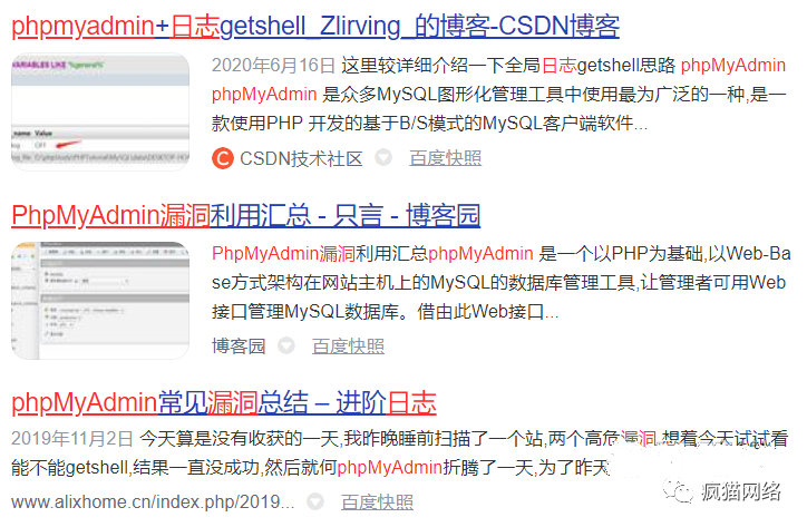 我记得phpmyadmin是有漏洞的,于是百度了一下,好家伙,直接getshell的漏洞