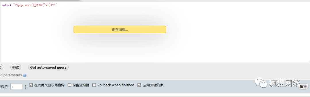 所以,当我们提交的sql语句中包含一句话木马的时候,会存储在日志文件中,而日志文件命名为.php为后缀时,一句话木马就可被执行