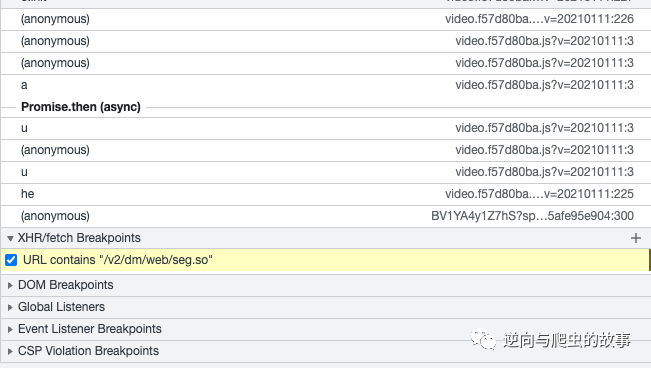 3、使用xhr/fetch对该请求打断点调试,截图如下所示:
